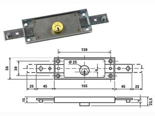 SERRATURA PER SERRANDA CENTRALE A CILINDRO TONDO FISSO 1600